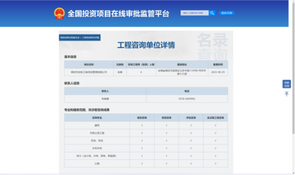 2023年9月21日,阜陽啟拓成功通過國家發(fā)改委工程咨詢單位備案審核。這標志著公司自此可開展建筑、市政公用工程、農(nóng)業(yè)林業(yè)、水利水電、電力、公路六個專業(yè)領(lǐng)域的規(guī)劃咨詢、項目咨詢、評估咨詢、全過程工程咨詢新板塊業(yè)務(wù)。